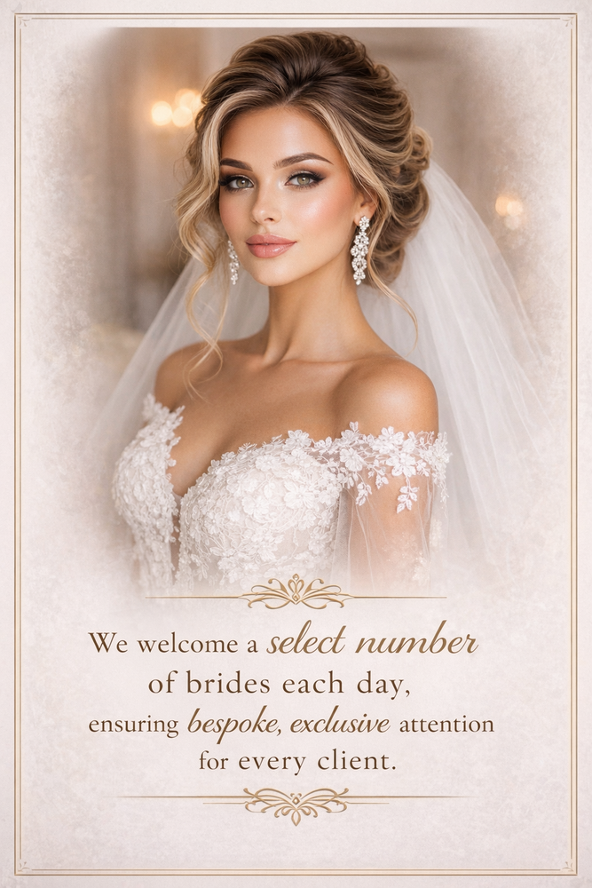 If you choose a Bride Only service, this includes bespoke bridal hair styling and makeup, designed to create a flawless, long-lasting look for your special day.